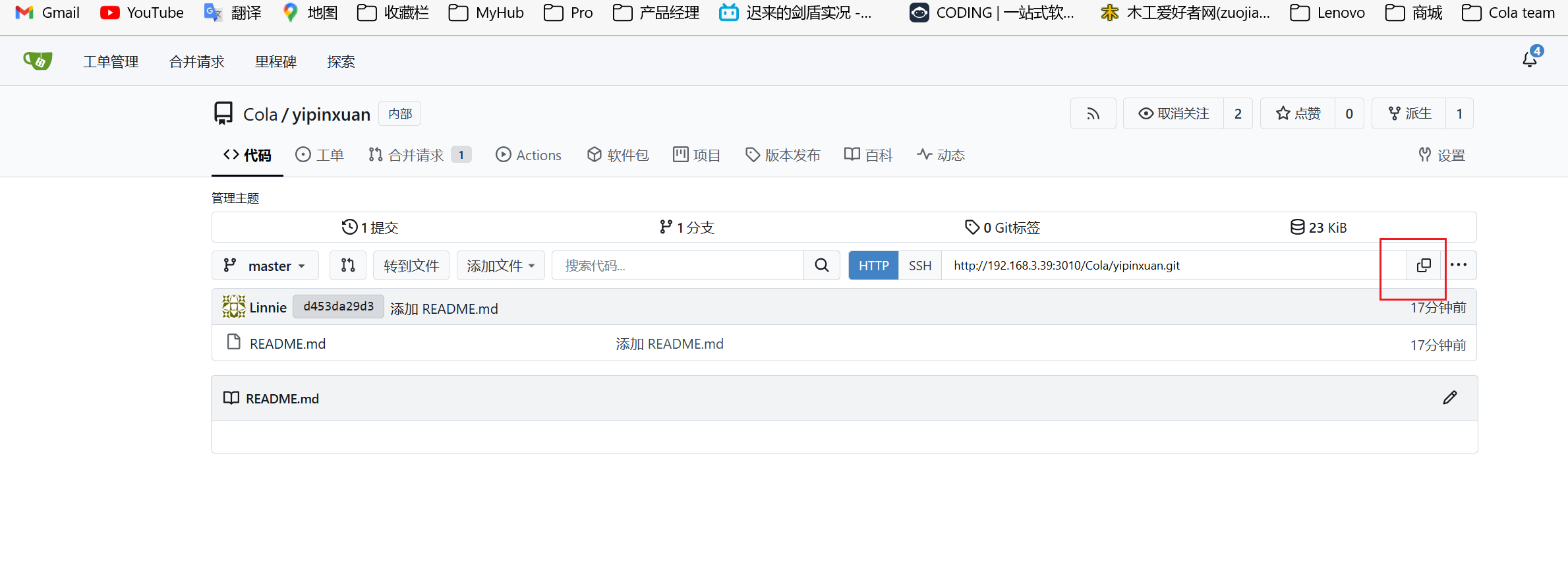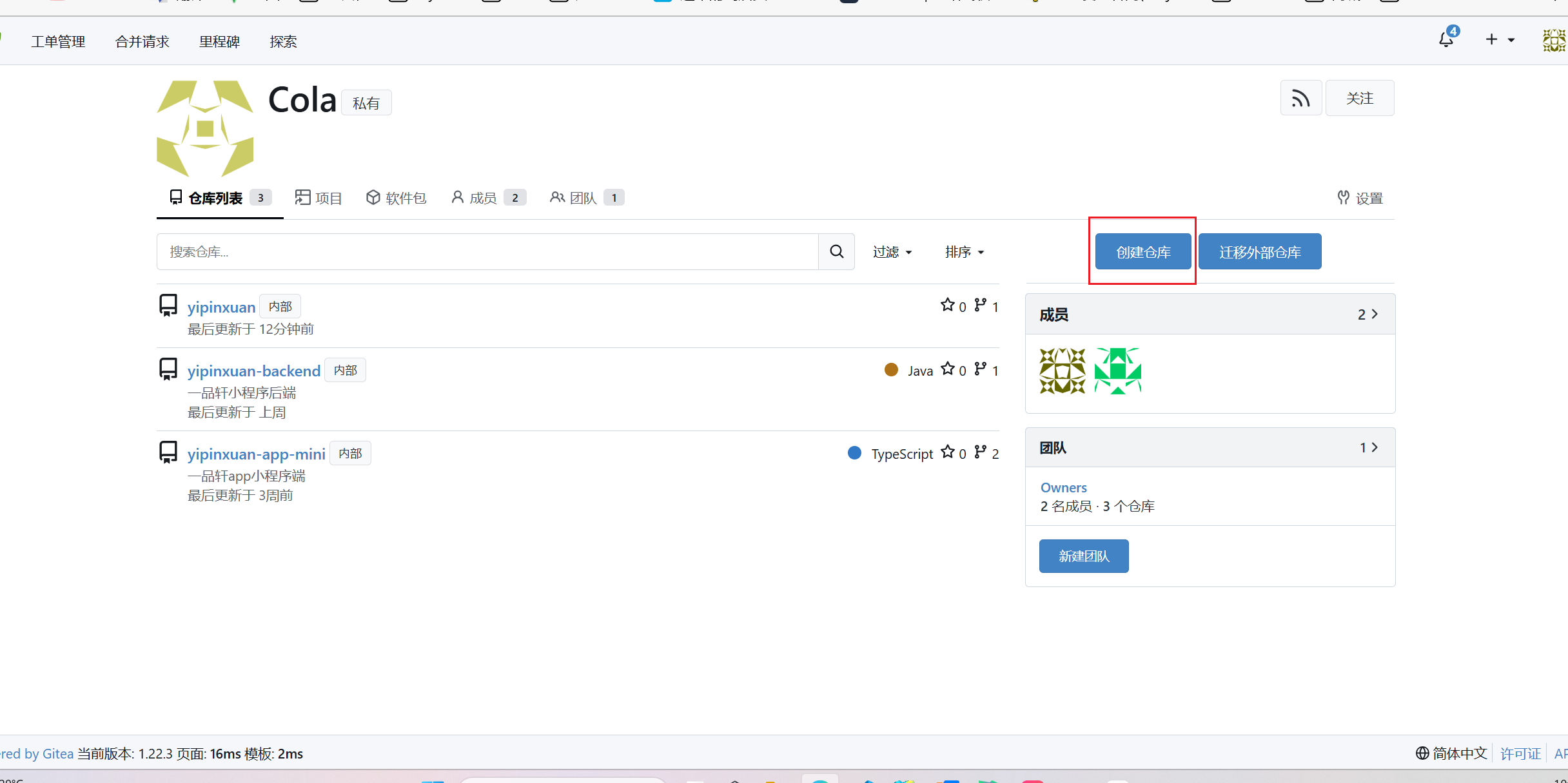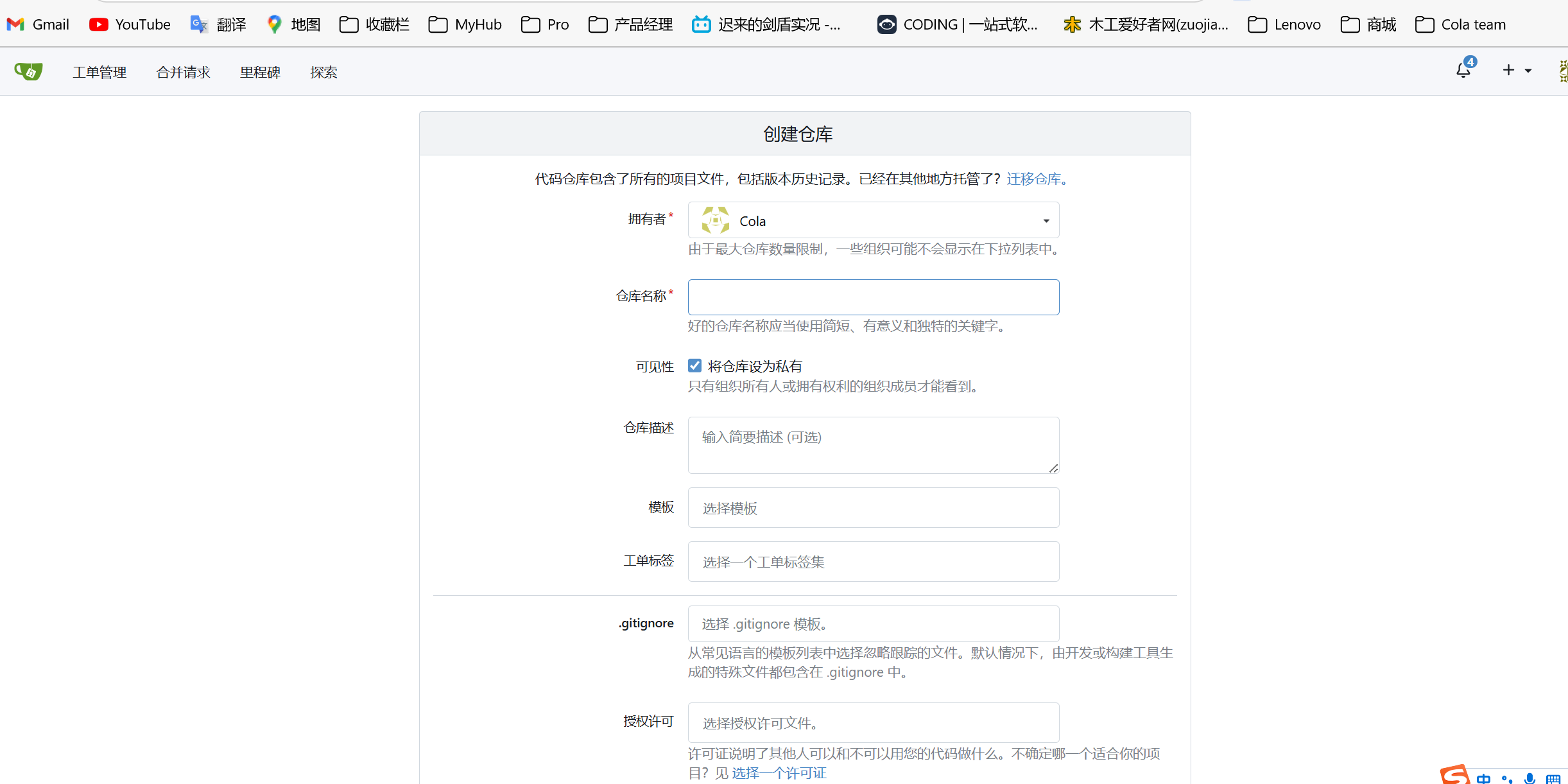 先在Cola仓创建仓库