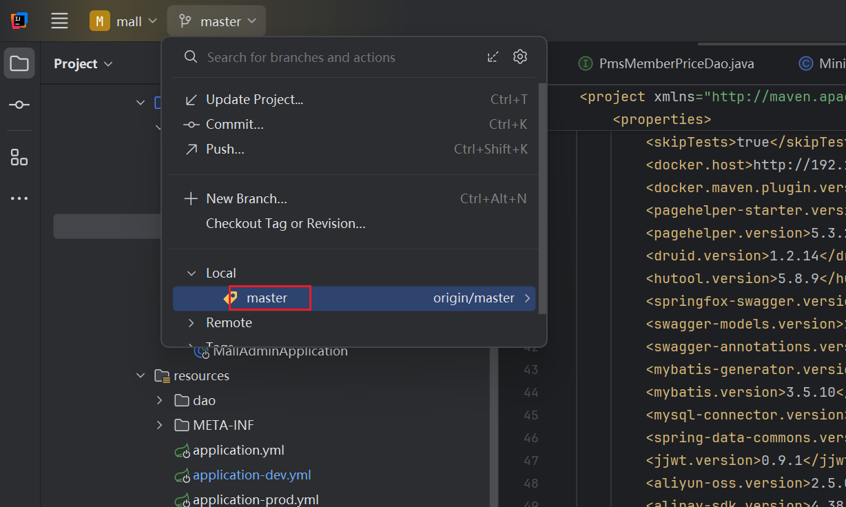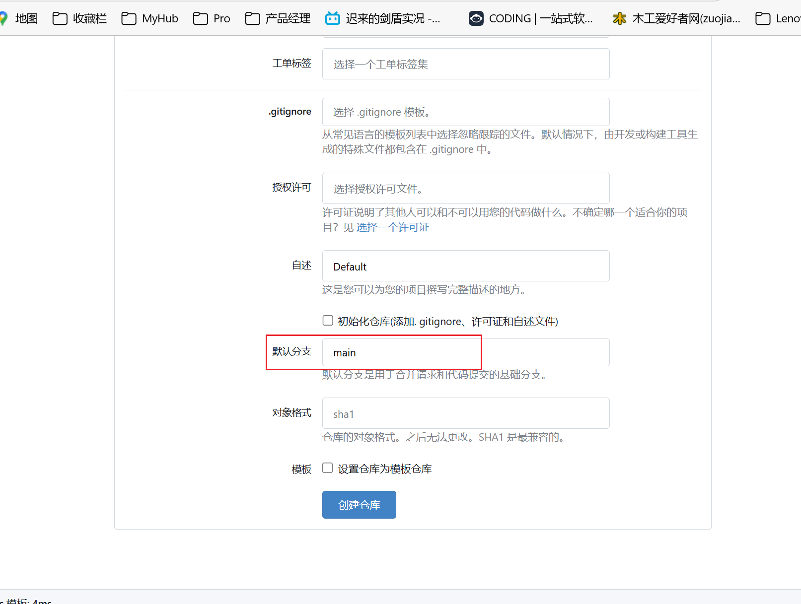 选择默认分支,对应即可