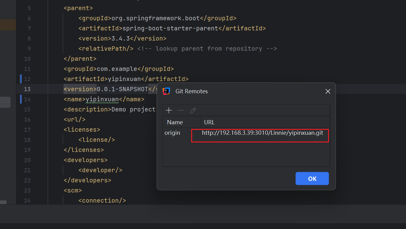 然后git配置远端,即代码要放到哪个仓库