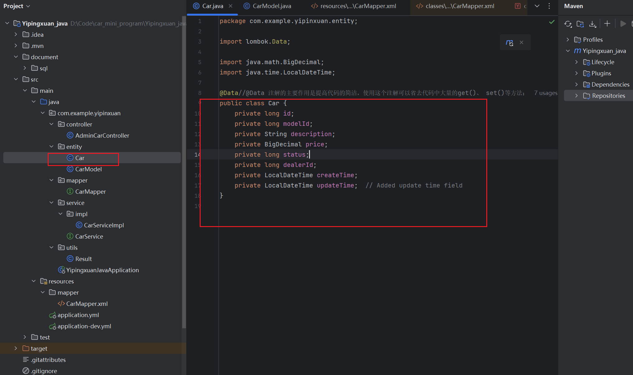 数据库中的一个数据表对应一个实体,数据字段和数据库中的字段对应