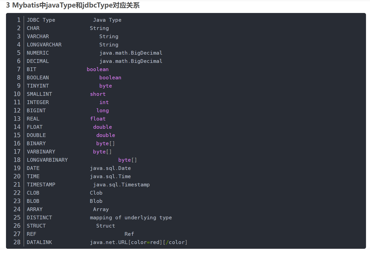 jbdc的数据类型和java的数据类型对应关系,写mapper标签时要注意对应