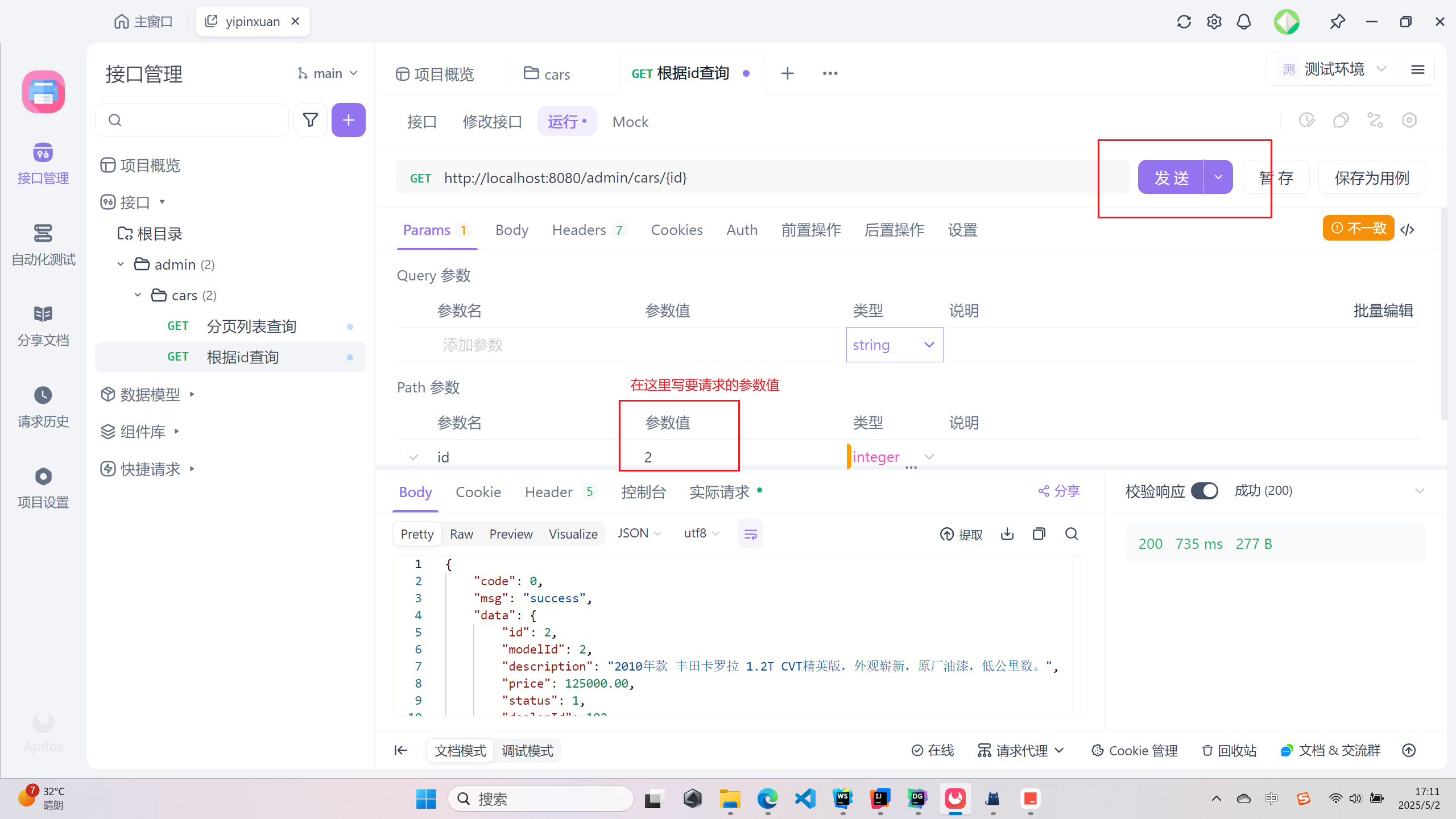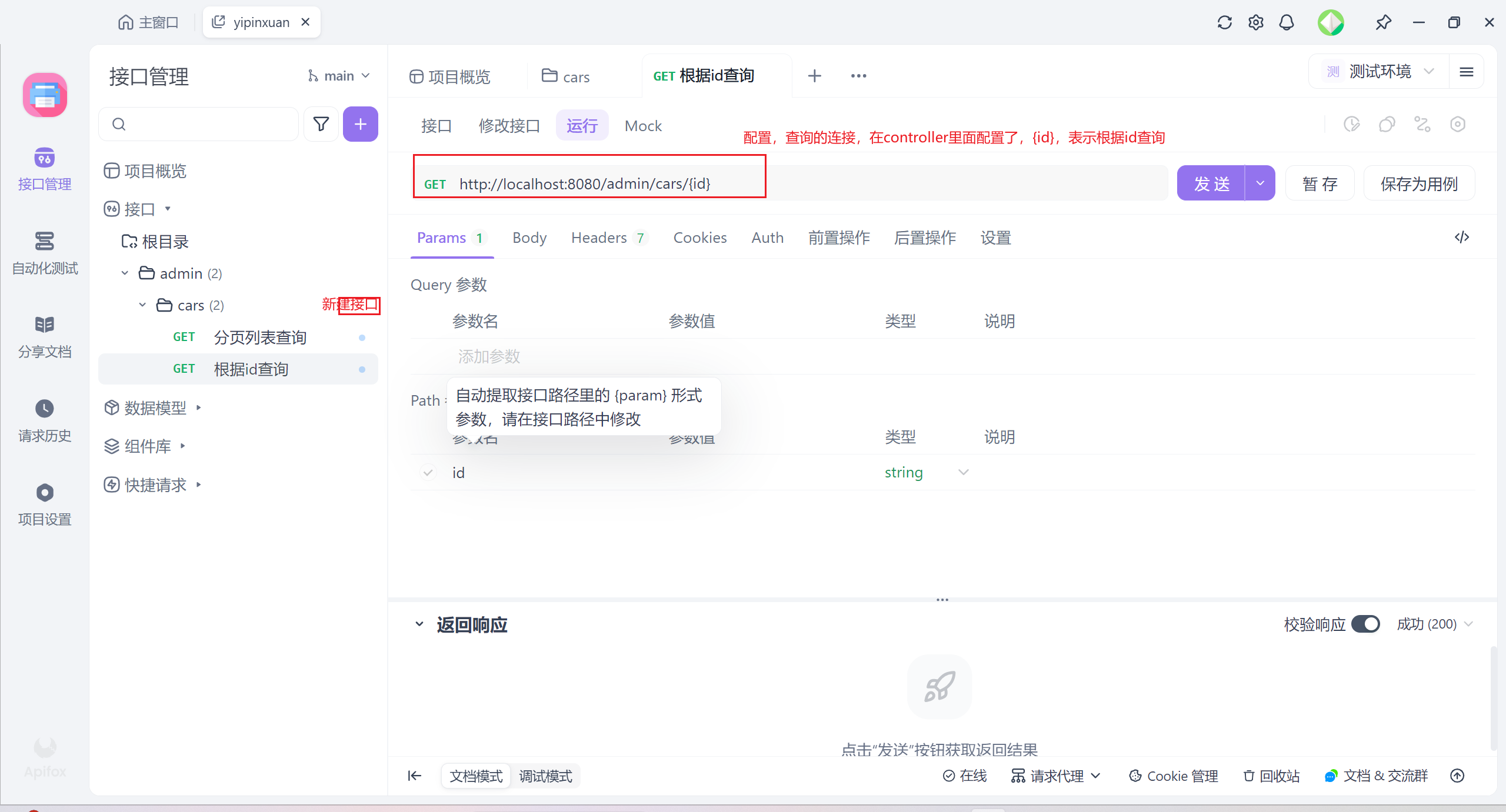 7、打开Apifox,用Apifox来调用接口,检查啊是否能够跑通