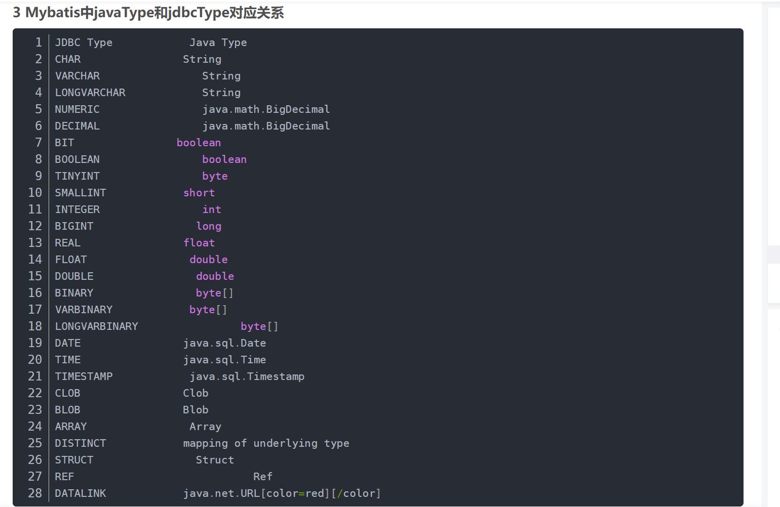1)调用数据时,java通过mybatis调用数据库的数据,但是mybatis和java的数据类型不一样,不是一一对应的,