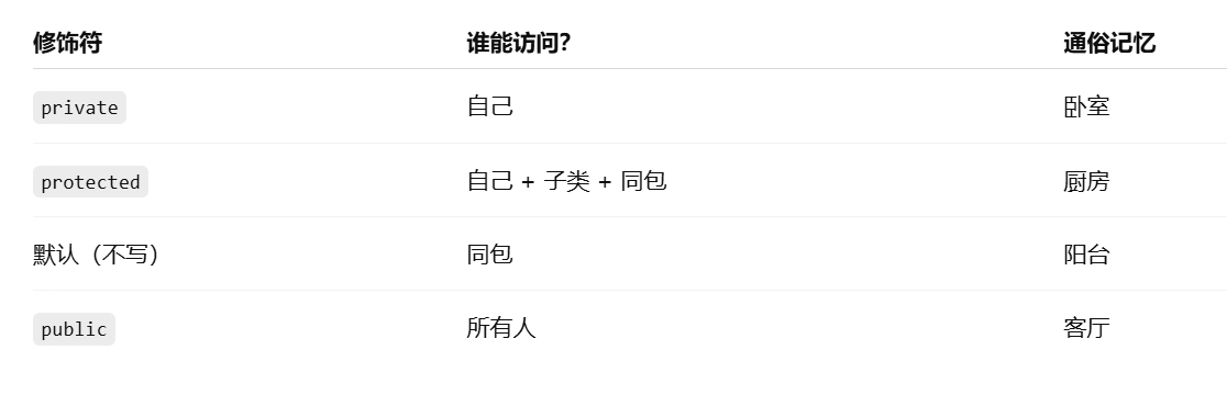 private int age; // 只有 Person 类自己能访问