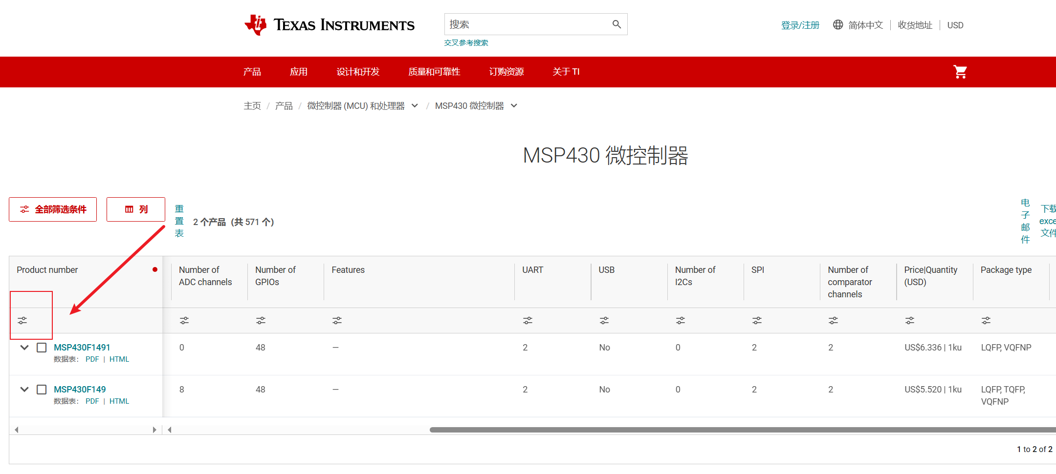 打开:https://www.ti.com.cn/zh-cn/microcontrollers-mcus-processors/msp430-microcontrollers/products.html