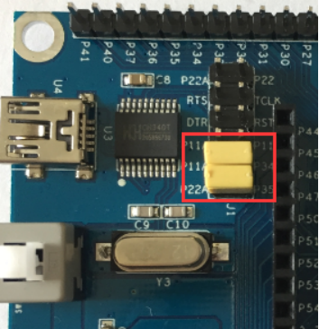 但如果我们要通过串口通信,此时USB默认被BSL占用,无法将其他设备通过USB与芯片进行串口通信,我们就需要跳线来使用串口功能: