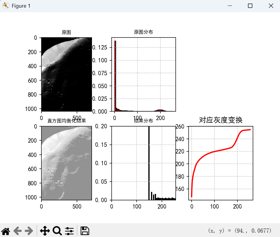 ori_eq_img, T_points = hist_equal(in_img) # 得到中间均衡化图像,ori_eq_img是原始图像经过直方图均衡化后的结果(灰度分布已被拉伸为近似均匀分布)
