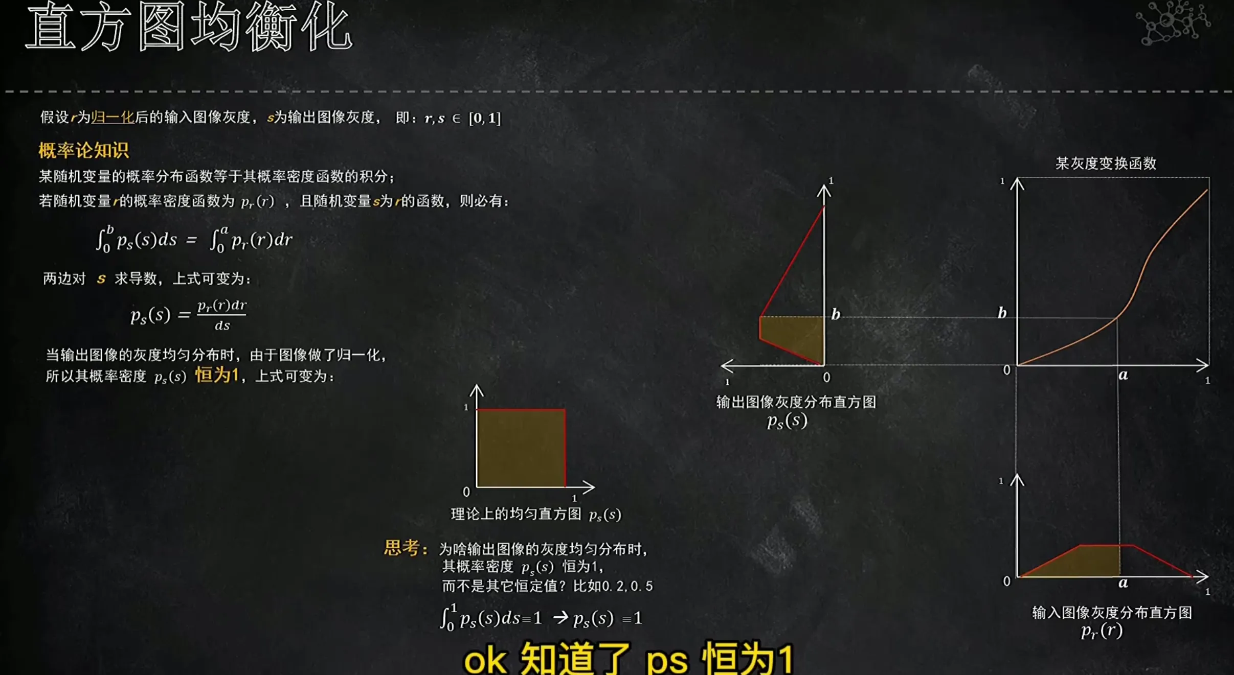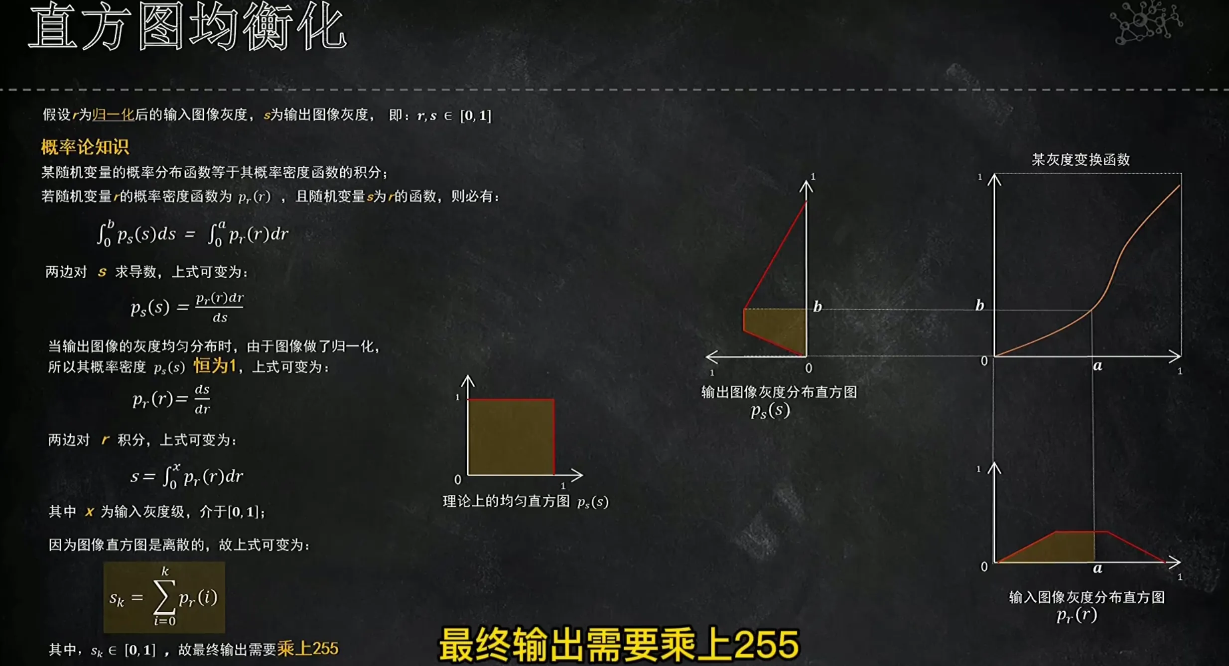 out_img[(in_img == i)] = SUMk * 255 # 灰度值归一化 ,灰度值映射(SUMK * 255):将累积概率(0~1)缩放至 0~255 的灰度范围,得到新的灰度值。“原始图像中所有灰度为 i 的像素,在输出图像中统一更新为新映射值”