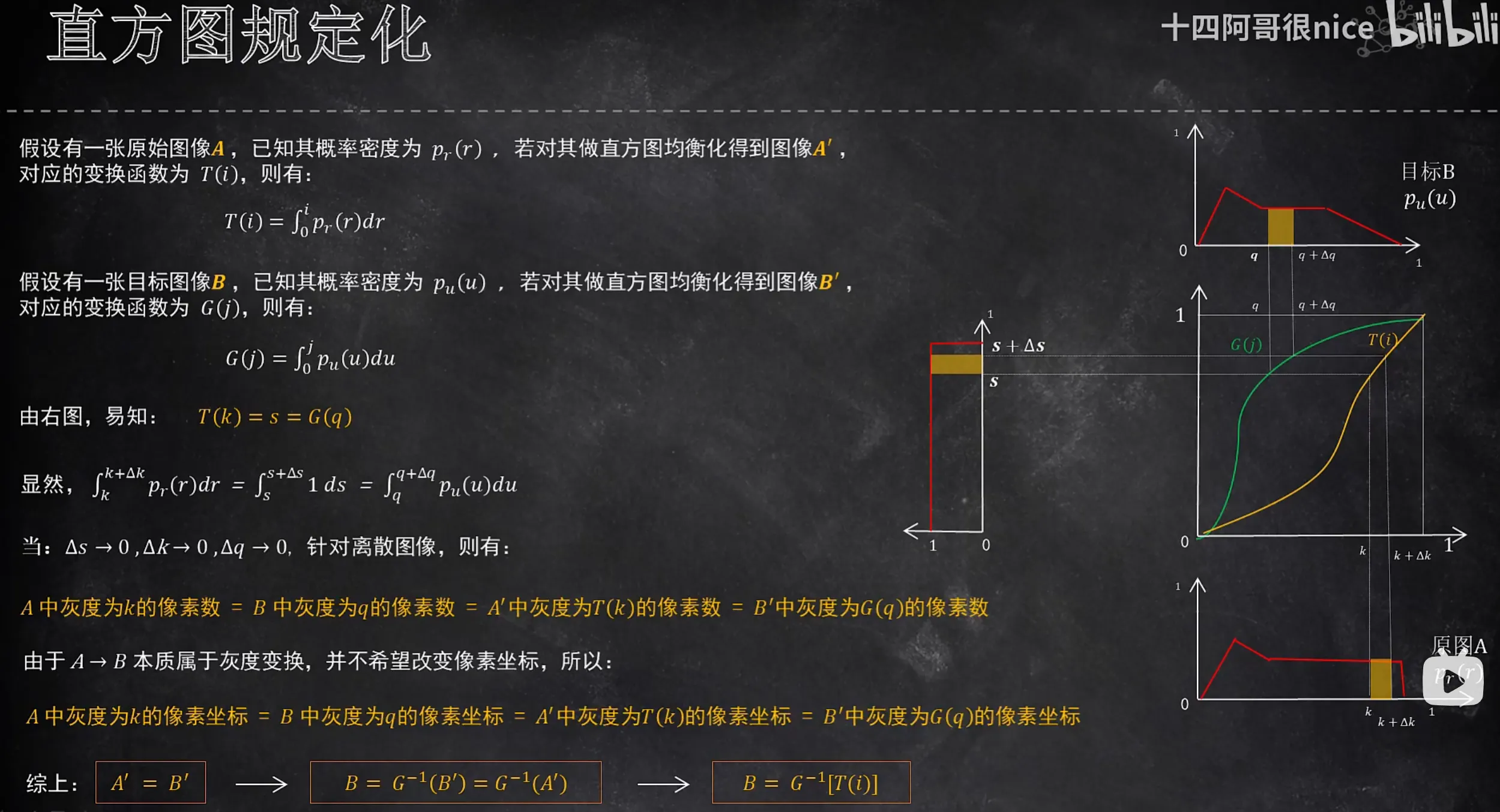 直方图规定化:目标是 “自定义分布”(目标由你选),比如想让图 A 的直方图长得和图 B 一样,就以图 B 为 “模板”,调整图 A 的灰度。
